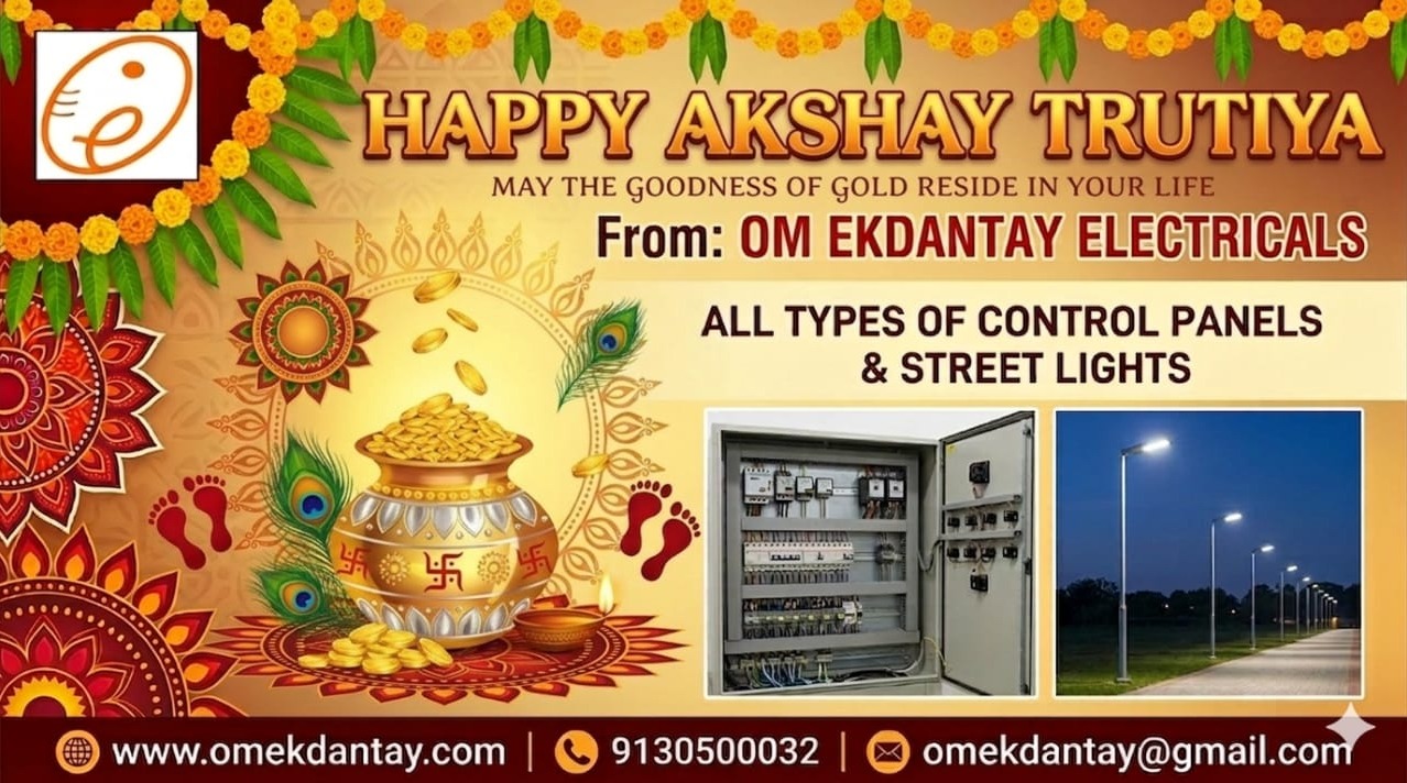 On the auspicious occasion of Akshaya Tritiya, may your life be filled with eternal prosperity, success, and a 'high-voltage' of happiness! Just as Akshaya Tritiya signifies never-ending abundance, we at Omekdantay Electricals wish that your home and business are always powered by growth and positivity.